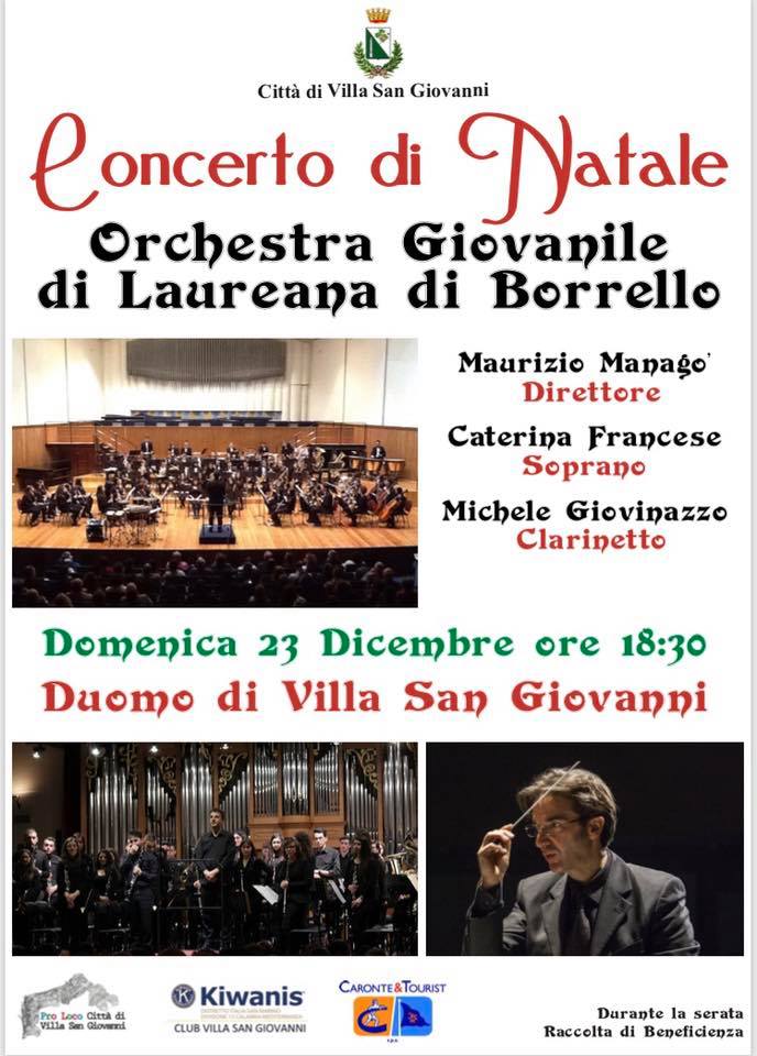 Concerto di Natale dell’Orchestra Giovanile di Laureana di Borrello, diretta da Maurizio Managò. Con la partecipazione di Caterina Francese (Soprano) e Michele Giovinazzo (Clarinetto). Durante la serata si terrà una raccolta di beneficenza.