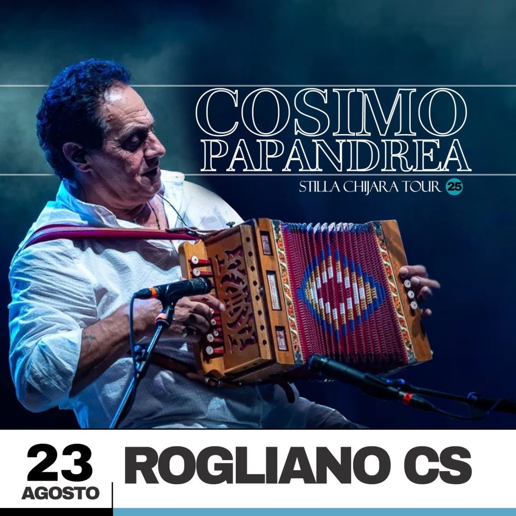Concerto di Cosimo Papandrea, tappa del suo “Stilla Chiara Tour 25”, che si terrà il 23 agosto a Rogliano.