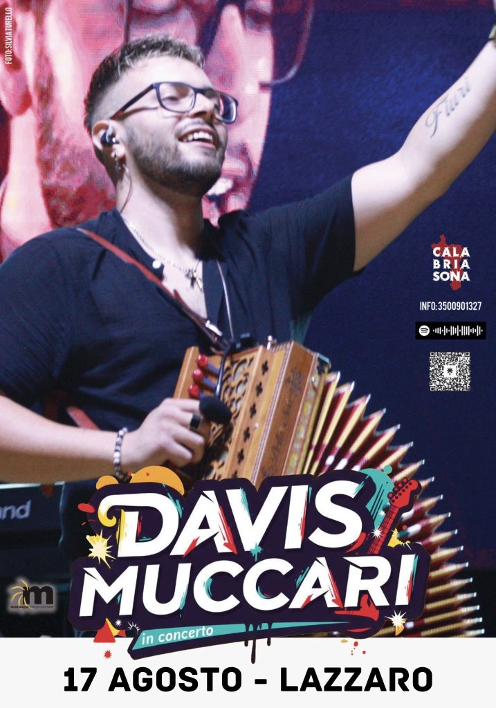 Concerto del cantante Davis Muccari che si terrà il 17 agosto 2025 a Lazzaro.