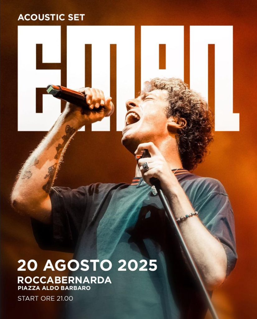 Concerto in set acustico dell’artista Eman, che si terrà il 20 agosto 2025 a Roccabernarda, in Piazza Aldo Barbaro. L’inizio dello spettacolo è previsto per le ore 21:00.