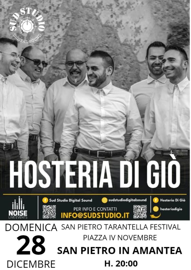 La band Hosteria Di Giò si esibirà in concerto in occasione del San Pietro Tarantella Festival. L’evento si terrà domenica 28 dicembre a San Pietro in Amantea, in Piazza IV Novembre, con inizio alle ore 20:00.