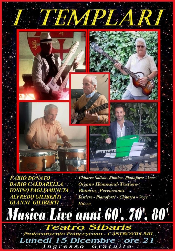 Concerto del gruppo ‘I Templari’ con musica live degli anni ’60, ’70 e ’80. Ingresso gratuito.