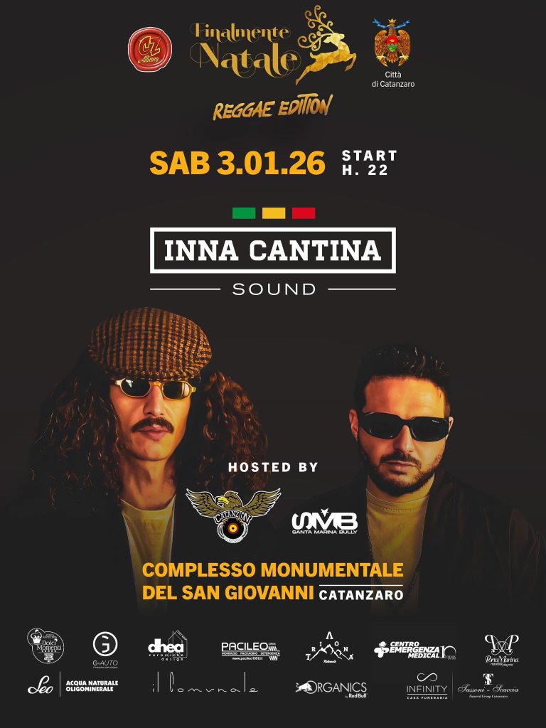 L’evento ‘Finalmente Natale – Reggae Edition’ presenta l’esibizione musicale di Inna Cantina Sound. La serata, ospitata da Catanzion e SMB Santa Marina Bully, si terrà presso il Complesso Monumentale del San Giovanni a Catanzaro. L’inizio è previsto per le ore 22:00.