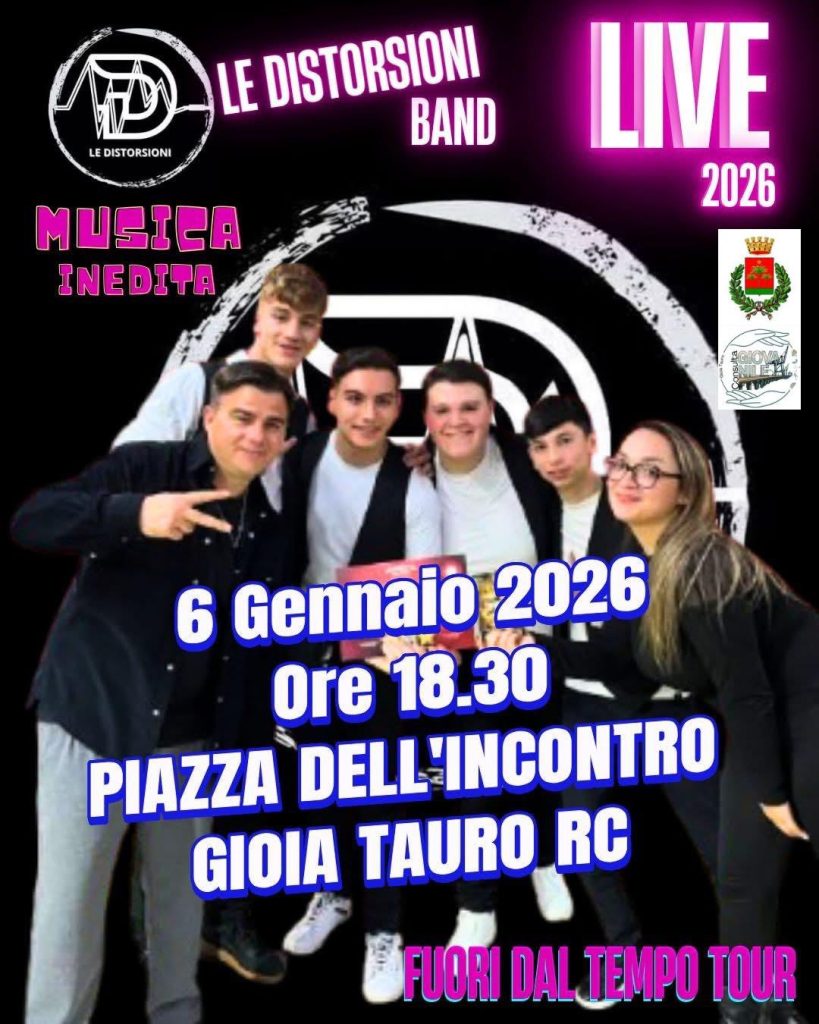 La band ‘Le Distorsioni’ si esibirà in un concerto live a Gioia Tauro, tappa del loro ‘Fuori dal Tempo Tour’. Durante l’evento, il gruppo presenterà la propria musica inedita.