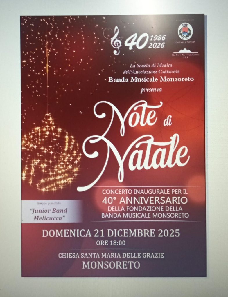 La Scuola di Musica dell’Associazione Culturale – Banda Musicale Monsoreto presenta ‘Note di Natale’, il concerto inaugurale per il 40° anniversario della fondazione della banda. Con la partecipazione del gruppo gemellato ‘Junior Band Melicucco’.