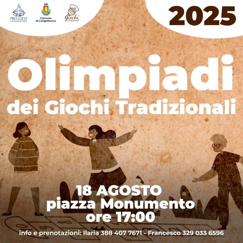 Edizione 2025 delle “Olimpiadi dei Giochi Tradizionali”, un evento dedicato ai giochi di una volta, che si svolgerà il 18 agosto 2025 in Piazza Monumento a Longobucco.