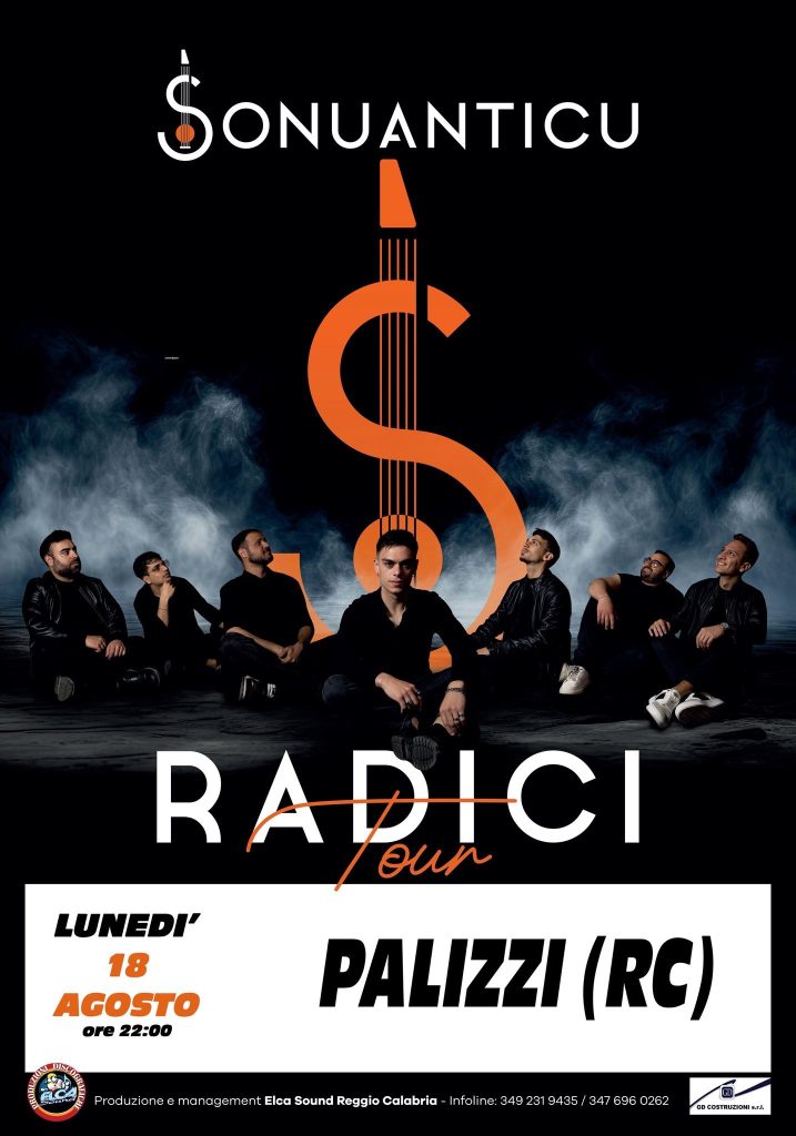 Concerto del gruppo Sonuanticu che si terrà lunedì 18 agosto 2025 alle ore 22:00 a Palizzi.