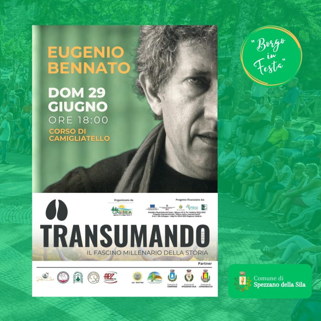 Concerto di Eugenio Bennato nell’ambito dell’evento “Transumando – Il fascino millenario della storia”, parte della rassegna “Borgo in Festa”. L’esibizione si terrà domenica 29 giugno 2025 presso il Corso di Camigliatello a Spezzano della Sila, con inizio alle ore 18:00.